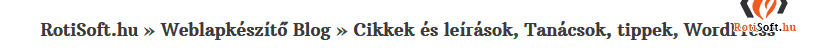 Természetesen a breadcrumb-an szereplő szavak tovább növelik az adott oldal kulcsszó arányát, így effajta jótékony hatásuk is. Igaz nálunk nincs olyan nagy tartalom, de azért saját weblapunkra is felhejeztünk egy navigációs menüt, ami csak a blogbejegyzéseknél jelenik meg. (Lenti kép.)